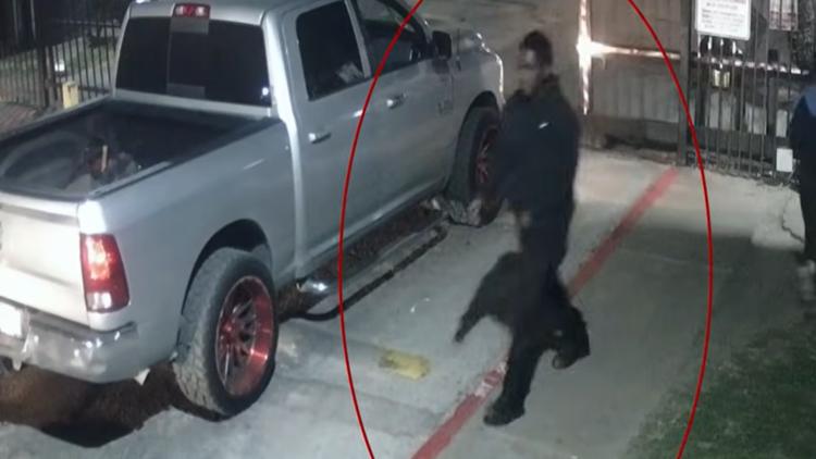 Houston police released video showing the man walking across the exit of what appears to be an apartment complex.