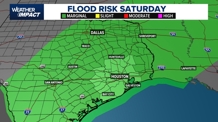 Southeast Texas faces potential storms Saturday, with heavy rain, gusty winds, and hail expected from 5-10 p.m.